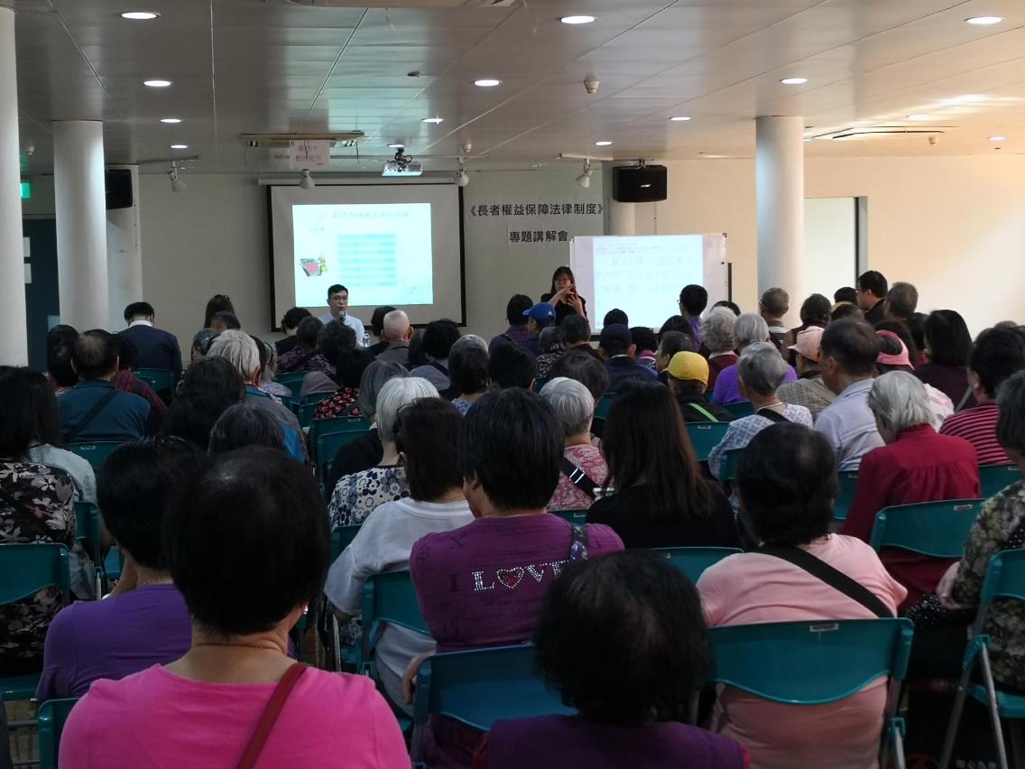 《長者權益保障法律制度》已於2018年11月19日正式生效。社工局持續透過法律專題講解會,向社會各界講解法律條文內容,讓參加者掌握立法目的與長者依法享有的權益保障,傳達維護長者權益是全社會共同責任的重要訊息;此外,講解會上亦介紹了本澳與長者相關的政策和服務現況,讓參加者瞭解特區政府在落實長者政策方面的具體成果。