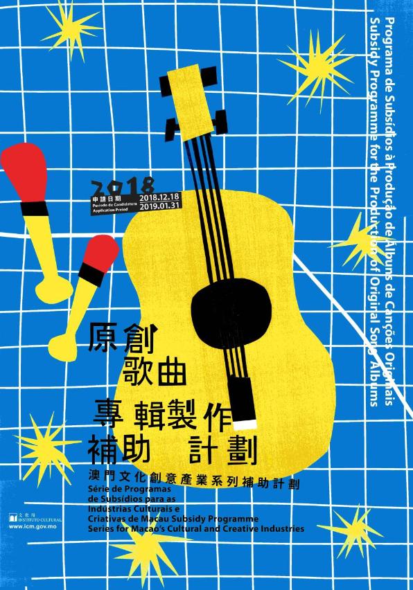 “2018原創歌曲專輯製作補助計劃”旨在培育更多本地音樂唱、製、創作人才,支持原創歌曲專輯製作及宣傳工作,鼓勵音樂人製作及發表更多優秀作品,為開拓市場作好準備。是次補助計劃為推動澳門音樂行業發展,將為獲選者舉辦各類型宣傳推廣活動,增加獲選者演出機會,以集中推廣補助成果,加深澳門市民對本地原創音樂的認識。每張獲選的歌曲專輯可獲最高補助金額為15萬澳門元及專業評審意見指導,補助名額最多8名獲選者。