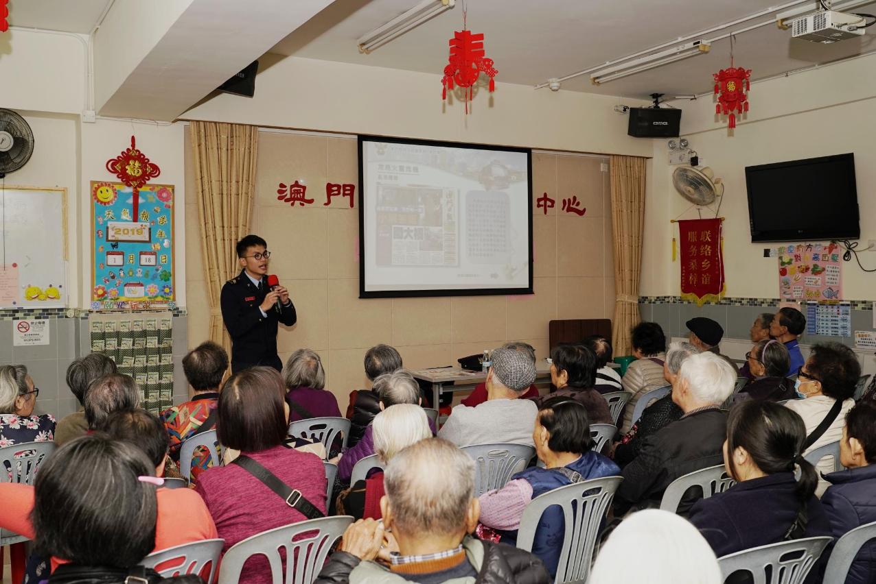 為加強本澳在農曆新年期間的消防安全環璄,減少居民因疏忽大意而引起火災的機會,消防局分別於2019年1月18日、23日及24日,派出官員拜訪“馬黑祐居民聯誼會”、“物業管理業商會”及“街坊總會石排灣家庭及社區綜合服務中心”,與上述團體領導層進行座談,共同就社區上的消防工作及有關業界在新春期間的防火注意事項進行探討和交換意見;座談後,消防官員和團體領導一同前往社區向居民、大廈管理從業員及商鋪負責人派發防火宣傳品,希望通過上述活動提高居民對火災的警覺性,達至新春期間“人人參與防火,開開心心過年”。