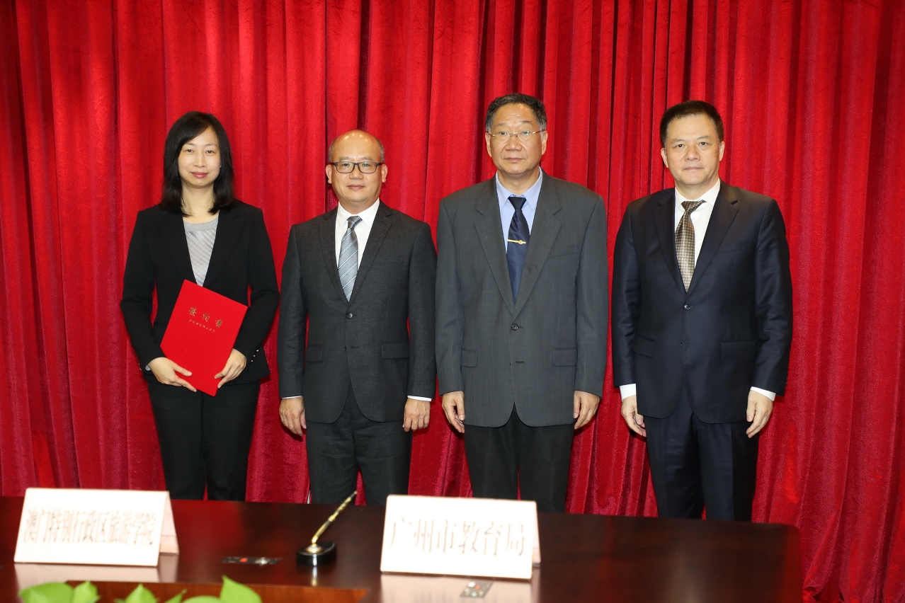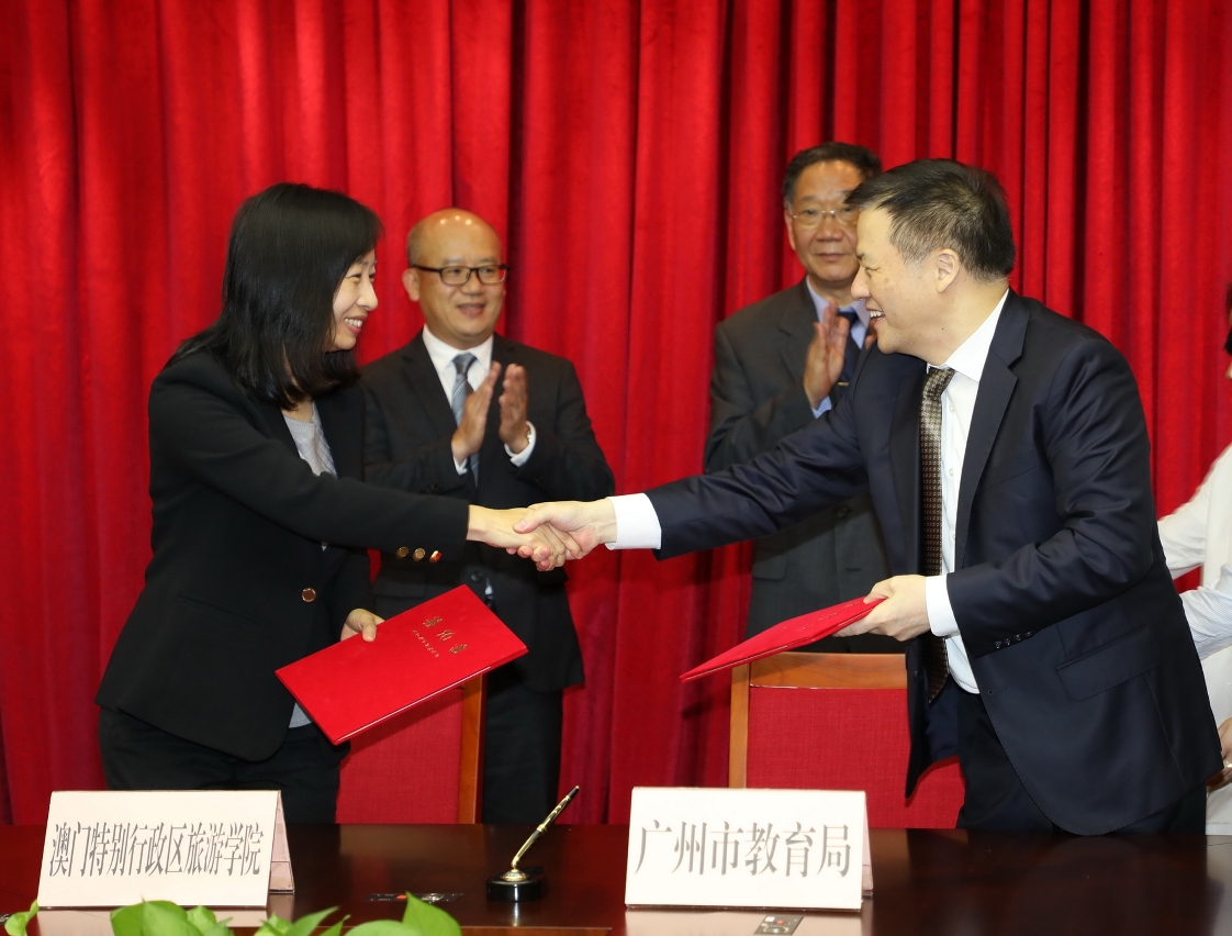 旅遊學院與廣州市教育局簽署合作協議,雙方將共同構建廣州旅遊職業教育與澳門旅遊教育的合作關係。合作協議簽署儀式於3月20日在廣州市政府舉行,旅遊學院院長黃竹君及廣州市教育局局長樊群代表所屬機構簽署, 由高等教育局曾冠雄代局長及廣州市政府副秘書長張建華見證。今次簽署此合作協議,將為旅遊學院與廣州市教育局在旅遊教育和培訓合作方面奠定更堅實的基礎。