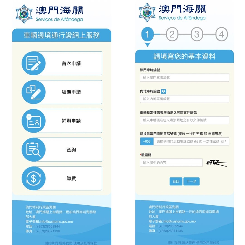 有關辦理「車輛邊境通行證網上服務」的詳情,可瀏覽海關網頁www.customs.gov.mo, 或於辦公時間致電8490 0514、89894317查詢。