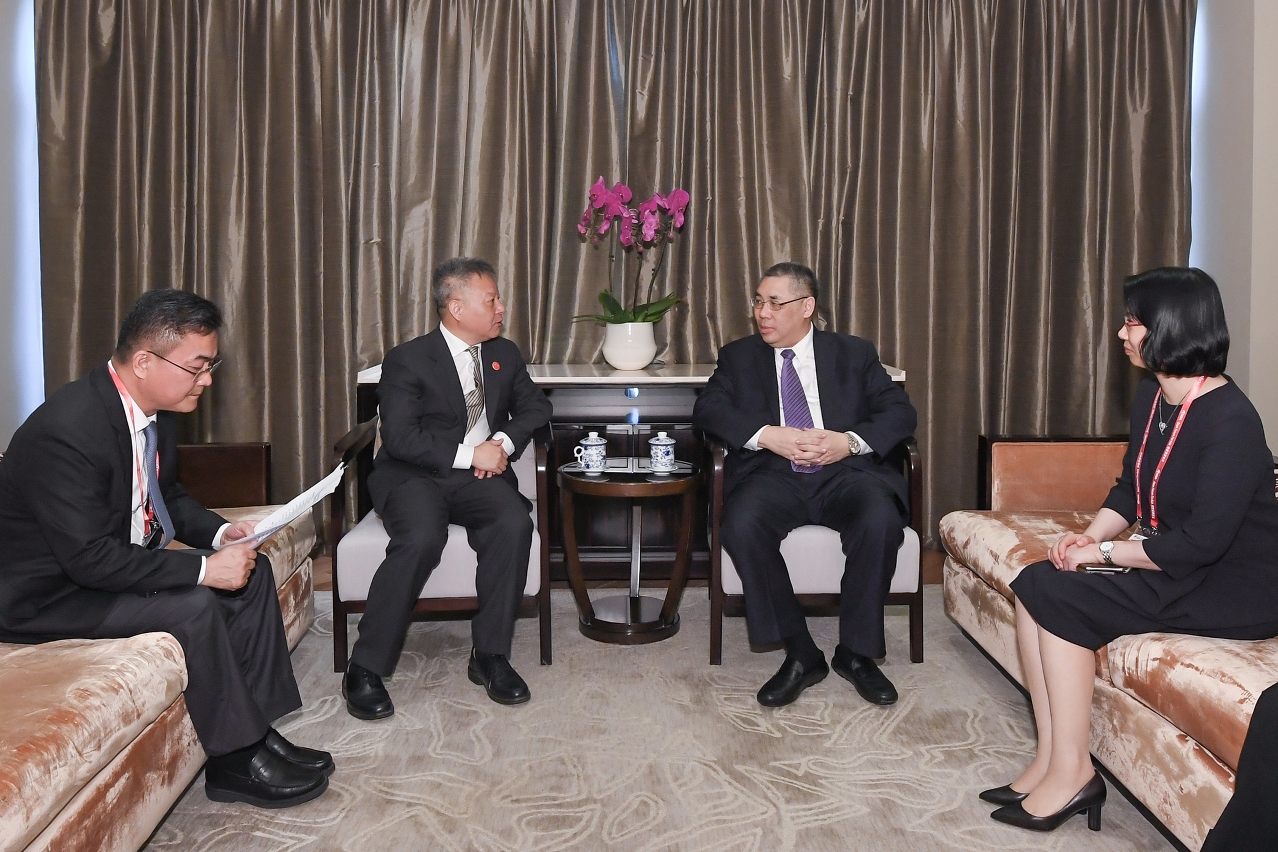 正在海南參與博鰲亞洲論壇2019年年會活動的行政長官崔世安今(27)日傍晚與海南省省長沈曉明會面,共同跟進上月雙方在澳門會面時談及的旅遊、高新技術及經貿等多個合作項目。