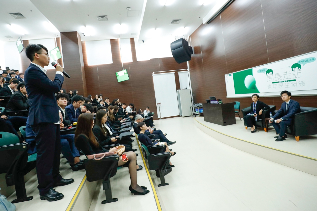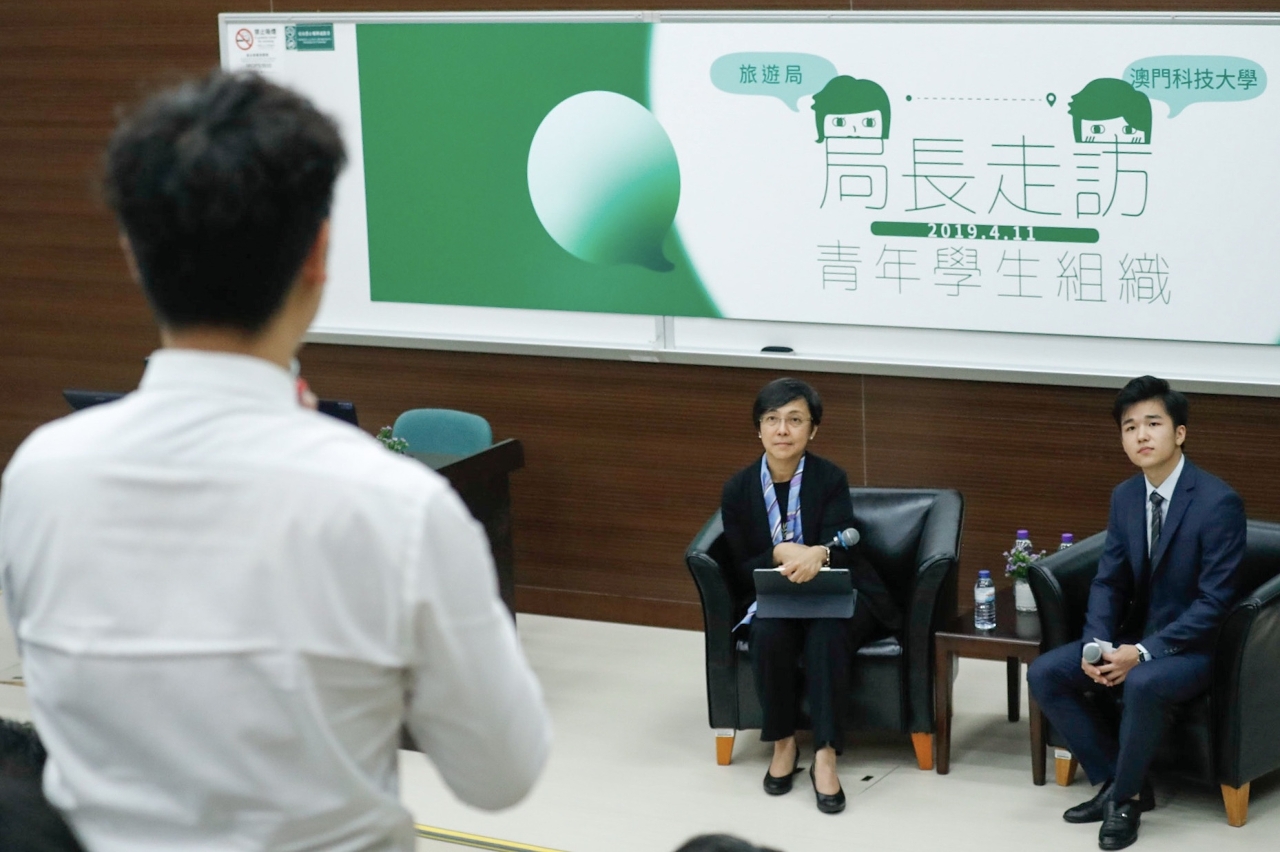 澳門特別行政區政府旅遊局局長文綺華昨(11日)走訪澳門科技大學聆聽學生意見,並一起探討旅遊業未來。學生們就“粵港澳大灣區”旅遊發展機遇及澳門旅遊內涵等方面踴躍提問及分享想法;文綺華喜見學生們主動關心澳門旅遊業並積極表達看法,冀辦同類活動能加強與青年溝通。