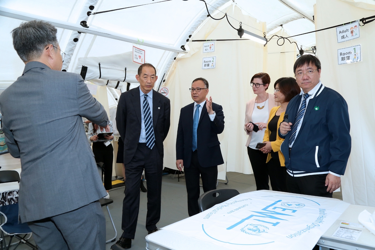 世界衛生組織西太區辦事處葛西健主任、規劃管理司劉運國司長、衛生安全和突發事件李愛蘭司長、地區主任辦公室潘潔蘭司長一行4人於昨天(5月3日)訪澳,與社會文化司譚俊榮司長及衛生局領導層舉行會議交流,並參觀了仁伯爵綜合醫院、黑沙環衛生中心及於4月30日成功取得世衛認證的“中國(澳門)國際應急醫療隊”的氹仔北安營地,了解本澳專科及基層醫療系統發展,以及參與世衛認證項目取得的成果。