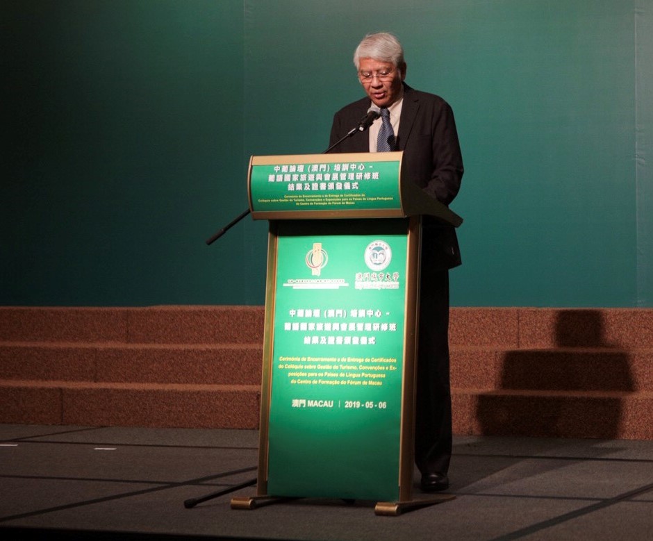 由中葡論壇(澳門)培訓中心主辦、澳門城市大學承辦的“葡語國家旅遊與會展管理研修班”於5月6日假澳門美高梅宴會廳舉行結業典禮及證書頒發儀式。
