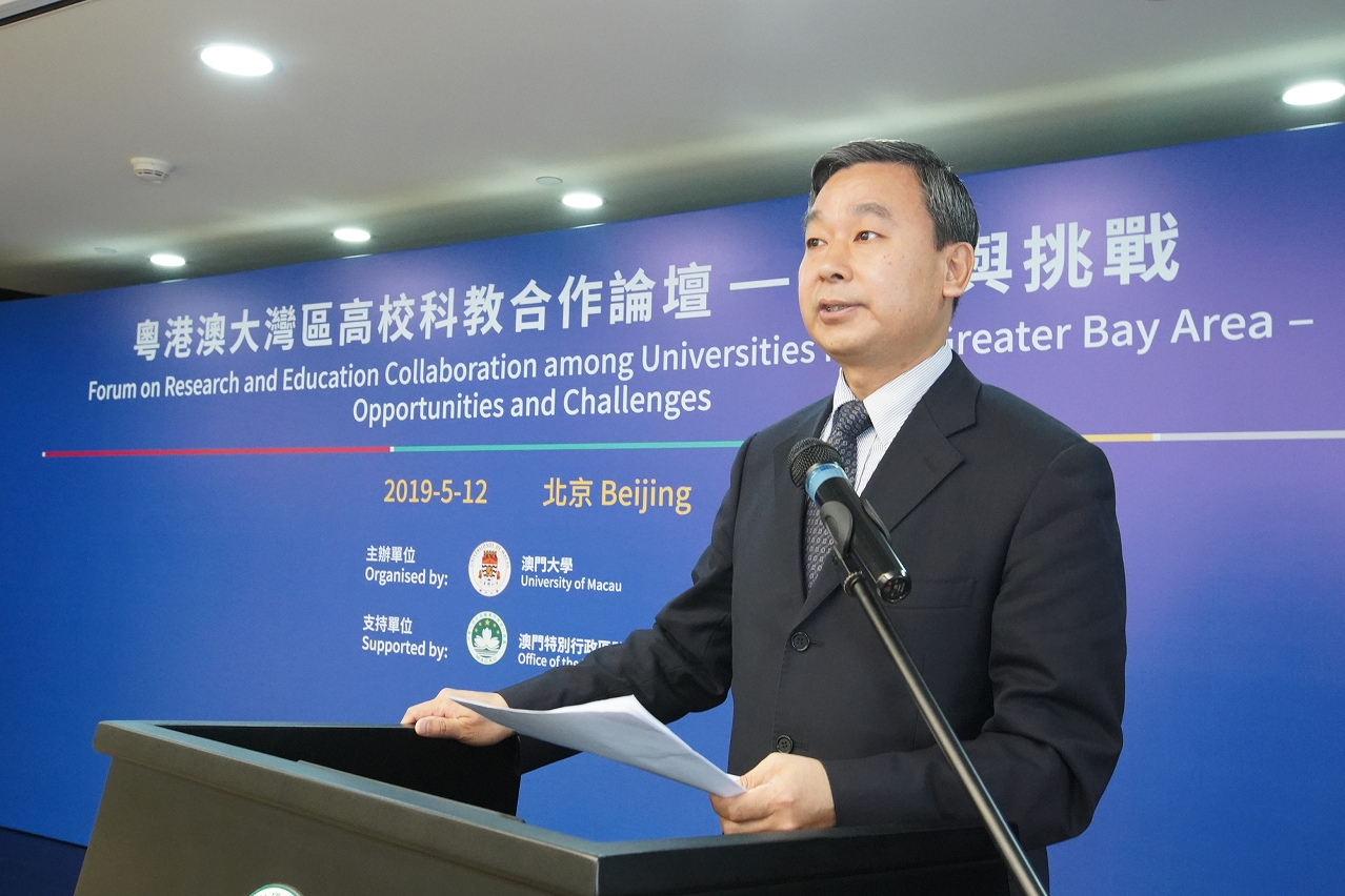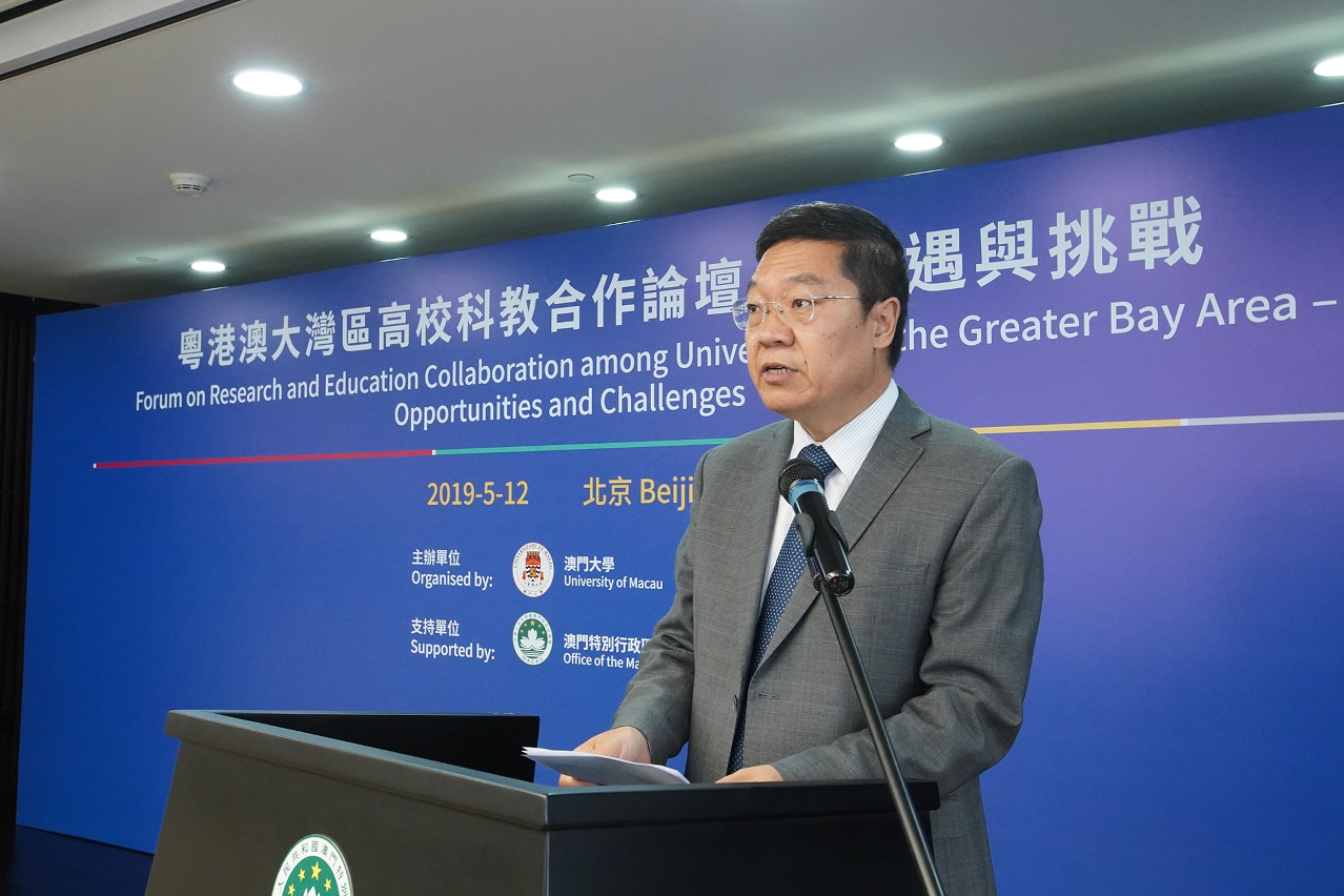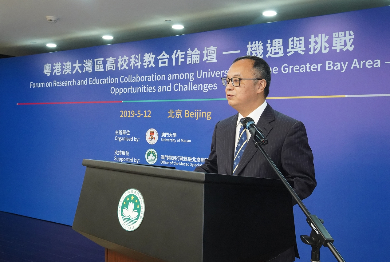 澳門大學校長宋永華致辭表示,澳門大學將繼續以“立足澳門,融入灣區,面向全國,走向世界”為原則,以“合作帶來進步、互利達致共贏”為信念,積極參與大灣區的高校科教合作。