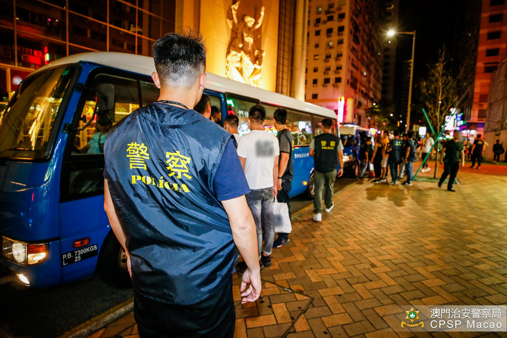 行動中一共截查531人(423男108女),其中121人(89男32女)需帶返警局作進一步跟進處理,經調查後發現共有105人涉及違法違規行為(81名涉嫌從事非法兌換貨幣及不法借貸活動、15名涉嫌從事賣淫活動、1名非法入境、2名逾期逗留、2名非法工作及4名不法持有刷卡終端機),有關人士已被送交相關部門作跟進;在查車行動方面,共截查了82輛車輛,並對當中4宗違例情況作出檢控。治安警察局將持續加強具針對性的反罪惡行動,維護本澳良好的治安環境。