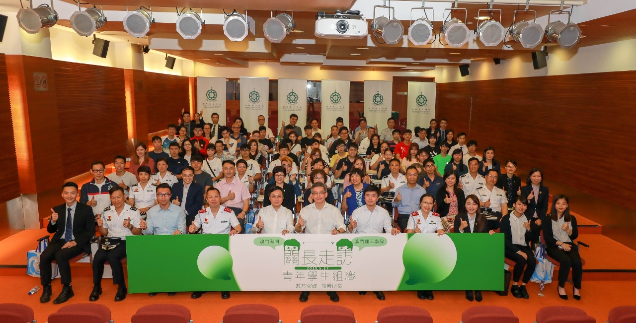 為聆聽和了解青年需求,推動青年積極參與社會事務,澳門海關黃有力關長與一眾海關人員於本月17日走訪澳門理工學院,並與學生會、校友會代表以及一眾學生和教職員舉辦座談,介紹海關的工作及發展狀況,聽取意見。黃有力關長亦藉分享自身公職生涯的經歷和體會,勉勵青年敢於接受挑戰,尋求突破,多元發展。