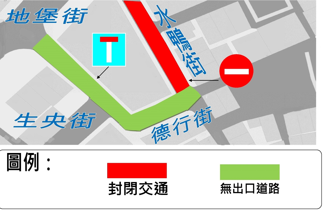 配合市政署疏通排水管道,5月27日(周一)至31日(周五)每日上午9時至中午12時、下午2時30分至4時30分,介乎氹仔地堡街與德行街之間的一段水鴨街封閉交通,而介乎地堡街與福隆彩巷之間的一段德行街則改為無出口道路。交通事務局呼籲駕駛者留意。
