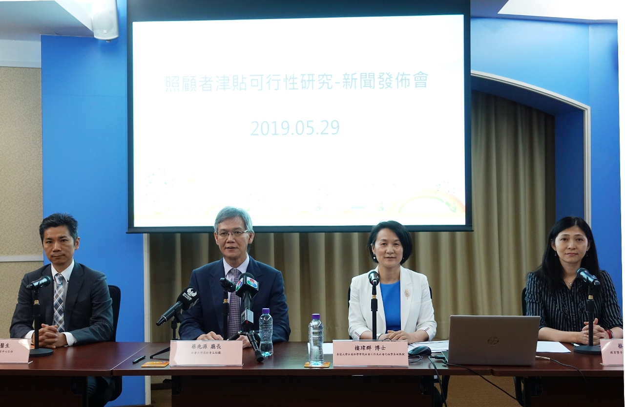 社會工作局今(29)日舉行新聞發佈會,公佈照顧者津貼可行性研究報告與及後的跟進安排,由社工局社會互助廳蔡兆源廳長主持,列席嘉賓包括:香港大學社會科學學院社會工作及社會行政學系副教授樓瑋群博士,衛生局兒童綜合評估中心主任戴華浩醫生,教育暨青年局教育心理輔導暨特殊教育中心蔡曉真職務主管。