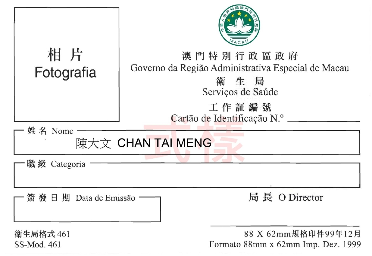 • 衛生局發出的證件式樣