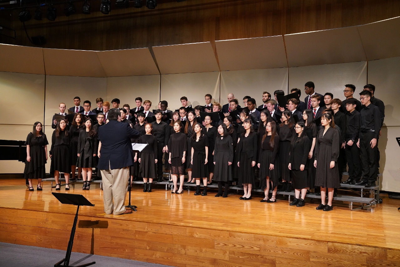 澳門大學合唱團和美國賓夕法尼亞大學合唱團在澳大聯袂演出。當晚,兩校合唱團攜手獻唱,共同傳播愛樂的熱忱,為觀眾帶來一場精彩的聽覺盛宴。