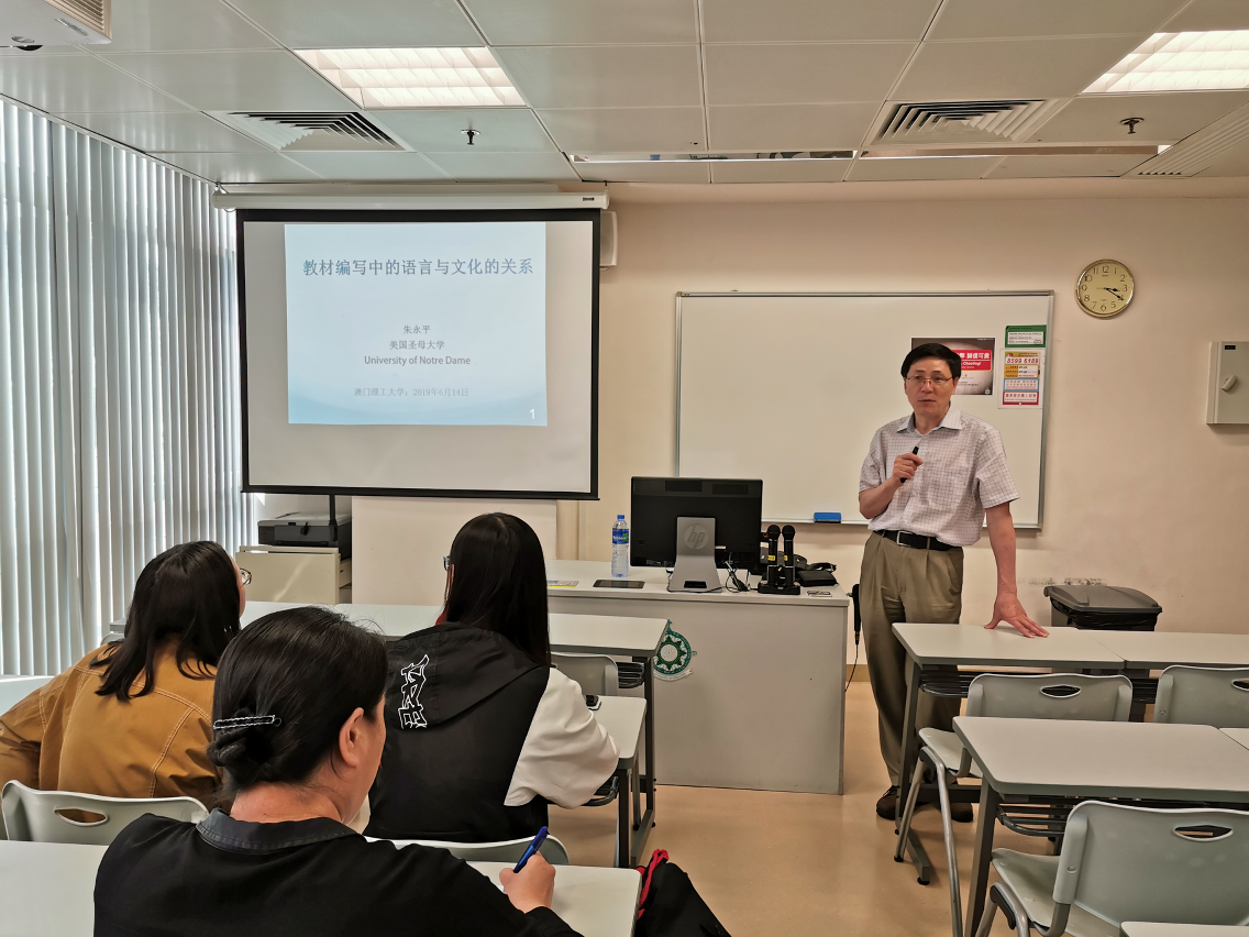 本月十四日,美國知名漢語教學與研究專家、聖母大學東亞語言文化系教授朱永平應澳門理工學院語言暨翻譯高等學校邀請,主講題為“教材編寫中的語言與文化的關係”講座,與該校國際漢語教育課程師生分享了對外漢語教材編寫經驗。講座內容精彩,反響熱烈。