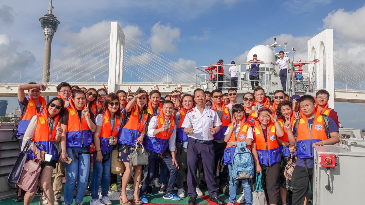 交流活動完結後,海關安排了一場應對海上暴力事件的演練,模擬海關快艇對一艘可疑快艇進行追截,展示如何利用戰術駕駛方式截停可疑快艇及應對暴力反抗行動。及後,黃文忠帶領一眾青年登上海關輪出海,實地了解澳門管理海域範圍和海關於海域內的執法管理工作。