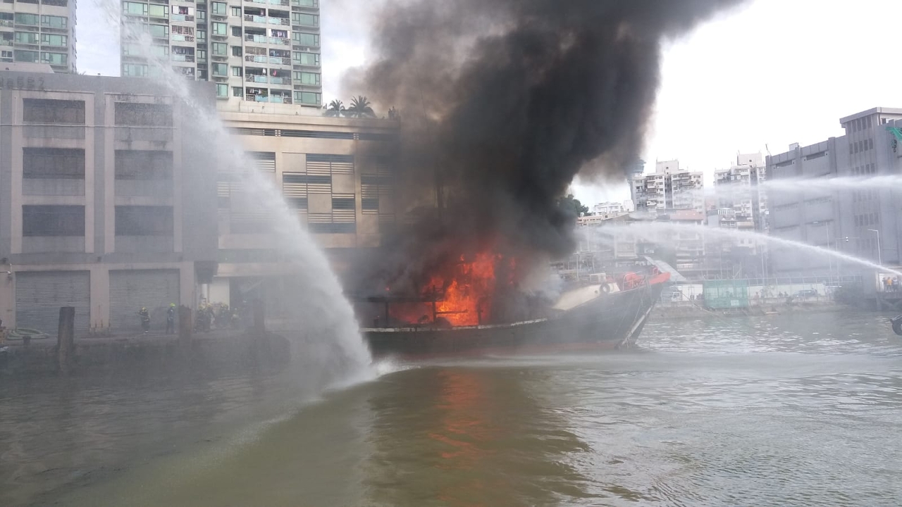 一艘漁船今(26)日下午在內港5B碼頭對開起火,海事及水務局、海關、中國海警、中國漁政即時派出船隻到場救援,消防局亦派出人員和車輛協助,事件中無人受傷。