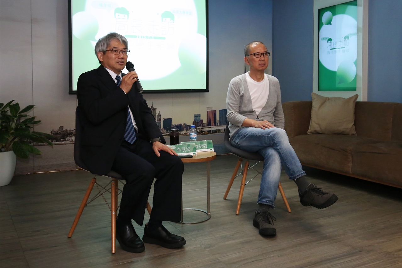 為持續加強與本澳青年的溝通交流,衛生局和高等教育局日前合辦了“我們的未來──微電影《傳承》分享會”的交流活動。衛生局李展潤局長和梁德森導演走訪大學生中心,與本澳約30名大專學生進行分享及交流,暢談醫護職業生涯的種種經歷、發展前景,以及從事影視製作過程中的各種得與失,並即場解答出席學生就職業生涯規劃提出的各種問題。
