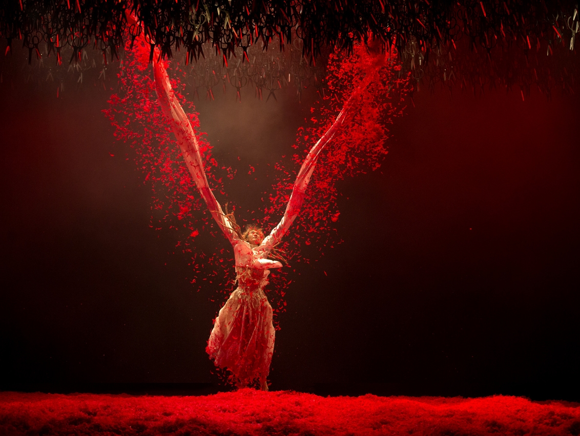 著名編舞及舞蹈家楊麗萍以重新演繹楚漢相爭的歷史為創作起點,透過營造唯美極緻的視覺呈現出戰場的悲壯血腥,再揉合當代與民族舞蹈繪畫出霸王別姬的哀怨纏綿。舞者以京劇造型識辨出劇中人物,有帶著誇張面具的劉邦、穿著武生大靠的項羽、擁有雙重人格的黑白韓信、銀髮白髯的蕭何、及以一襲紅裝反串的虞姬。演出更採用琵琶、古箏、及鼓等樂器奏出現場音樂去營造緊湊氣氛,讓京劇的武打及翻騰融入現代舞蹈,絶對令人耳目一新。