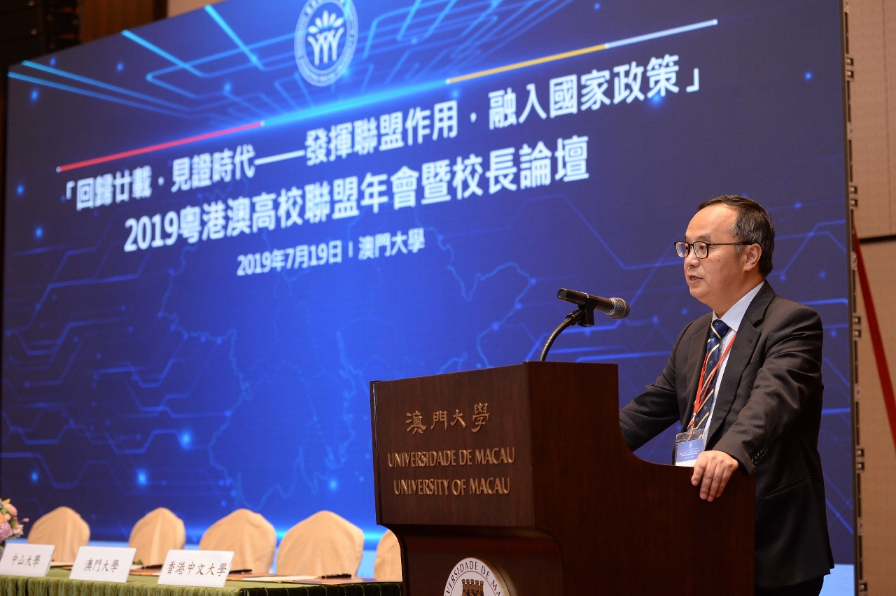 第三屆粵港澳高校聯盟年會暨校長論壇今(19)日在澳門大學舉行。約150名來自大灣區高校校長、專家學者就深化高校聯盟合作、推進大灣區高等教育科教發展進行深入探討。同場,還舉行了粵港澳高校聯盟專業聯盟簽約儀式,涉及公共衛生、中醫藥、中文等領域,以達致三地高校在各自專業上的優勢互補。