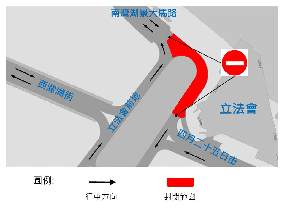 介乎南灣湖景大馬路與四月二十五日街之間一段立法會前地 |