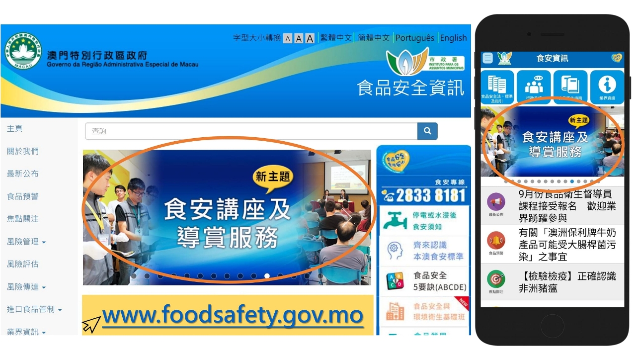 同時,為響應聯合國本年度「世界食品安全日」宣導主題—「食品安全與每個人都息息相關」(Food safety, everyone’s business),市政署鼓勵市民積極行動,參與食安教育講座,學習及掌握食安風險控制要點;並可透過市政署於「食品安全資訊網」及「食安資訊」流動應用程式(App)所設的「食安常識」欄目,獲取切合本澳食品消費市場且適時發佈的食安科普資訊。目前,「食安常識」欄目已上載近百篇科普文章,並分作「食安科普」、「消費提示」、「檢驗檢疫」及「其他」四大類別,方便公眾查閱。此外,市政署亦呼籲巿民在接收到可疑的食安傳聞或內容時,應謹慎求證,透過官方渠道獲取資訊,切勿誤信謠言。