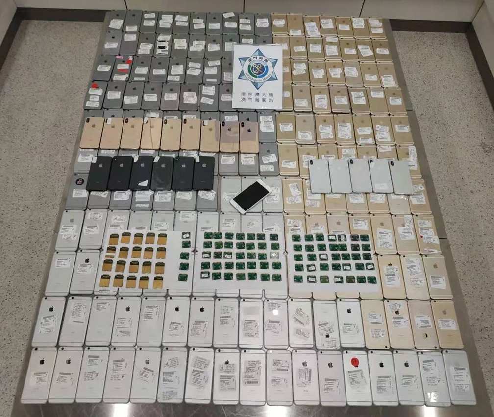 澳門海關根據香港海關提供的情報,成功截獲一宗走私舊智能電話案件,查獲208部未經申報的舊智能電話及電子晶片,海關已依法對涉案的香港男子作出起訴。