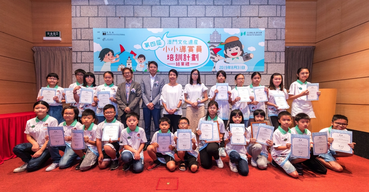 由文化局主辦、澳門文化遺產協會承辦的“第四屆澳門文化遺產小小導賞員培訓計劃”,日前(8月31日)在澳門博物館演講廳舉行學員結業禮。文化局向本屆完成培訓的學員頒發結業證書和“文化局小小導賞員”襟章,並向學習成績優秀的三名學員頒發“優異獎”,結業禮由導師及學員家長一同見證,現場氣氛溫馨熱鬧。