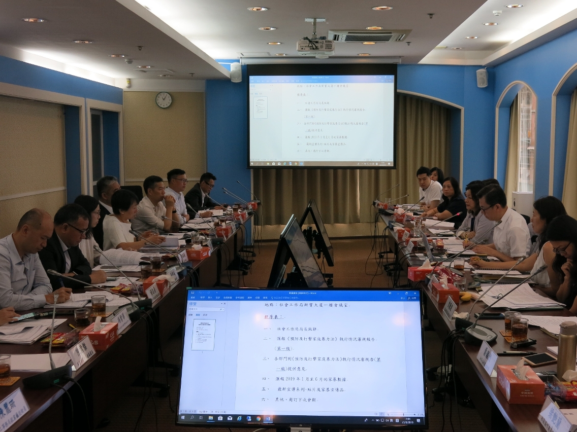 《預防及打擊家庭暴力法》2019年第一次合作機制常規工作會議於8月23日在社會工作局會議室舉行。會議由社會工作局黃艷梅局長主持,議程包括:討論《預防及打擊家庭暴力法》實施首三年執行情況審視報告初稿、2019年上半年家暴個案中央登記系統數據、預防家暴宣傳品及家庭生活教育短片等。