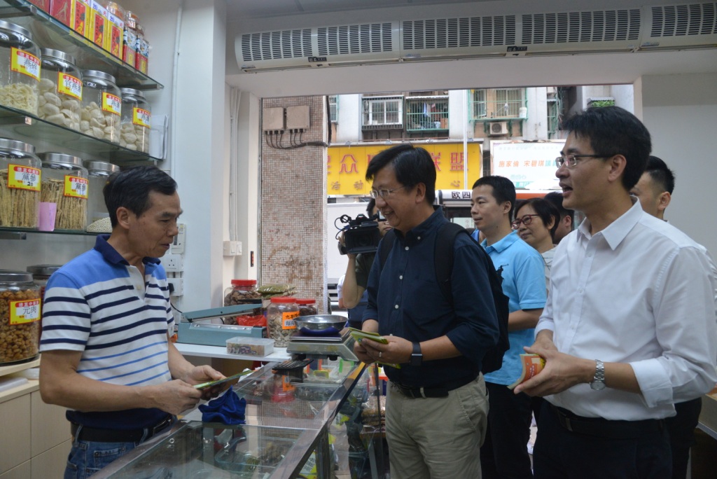 宣傳隊伍亦向附近的商戶派發有償提供塑膠袋之宣傳品,譚偉文局長等人期間與商戶就實際操作等問題作交流,大部分商戶均對法律表示支持,並會在店內張貼宣傳品,以配合有關宣傳工作。