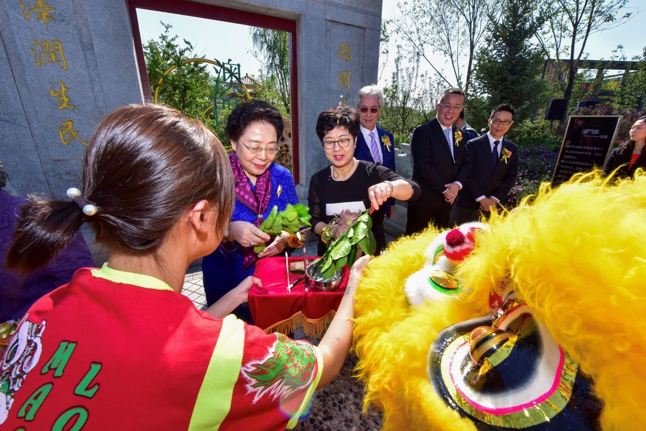 澳門應邀參與北京世園會,設置的澳門園展場面積約二千平方米,位置在香港園與台灣園之間,以澳門的媽祖閣、金蓮花雕塑,兵營等不同特色的建築物,和各類水生及陸生的植物揉合一起,突顯澳門小城中西文化交融。澳門園同時作為連接中國館及國際館的園區,設計配合“一帶一路”,展現澳門作為近代中西文化交匯點跟古代海上絲綢之路的重鎮特色。