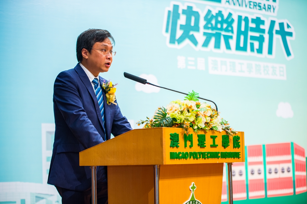 理工學院院長嚴肇基在儀式上感謝及歡迎本地及海內外遠道而來的校友對母校及校友會的支持,今年是新中國成立70周年、澳門回歸祖國20周年、也是澳門理工學院校友會成立20周年的重要日子,在這喜慶日子共聚母校別具意義;同時喜見校友會除積極參與特區政府與青年對話外,近年更走出澳門,組織多個大灣區交流及國情考察活動,希望校友們一如既往的愛國愛澳,努力傳承,服務社會。嚴肇基表示,今年理工開設了重點學科的研究生課程,獲眾多校友踴躍報名,證明校友們對母校辦學質量的高度認可。