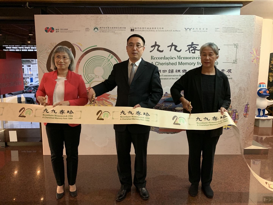 文化局澳門檔案館舉辦的“九九存珍──慶祝澳門回歸祖國二十周年圖片展” 日前(10月9日)在澳門駐里斯本經濟貿易辦事處開幕,並由中國駐葡萄牙大使館大使蔡潤、澳門駐里斯本經濟貿易辦事處主任柯天蓮、澳門檔案館館長劉芳主禮,場面熱鬧。