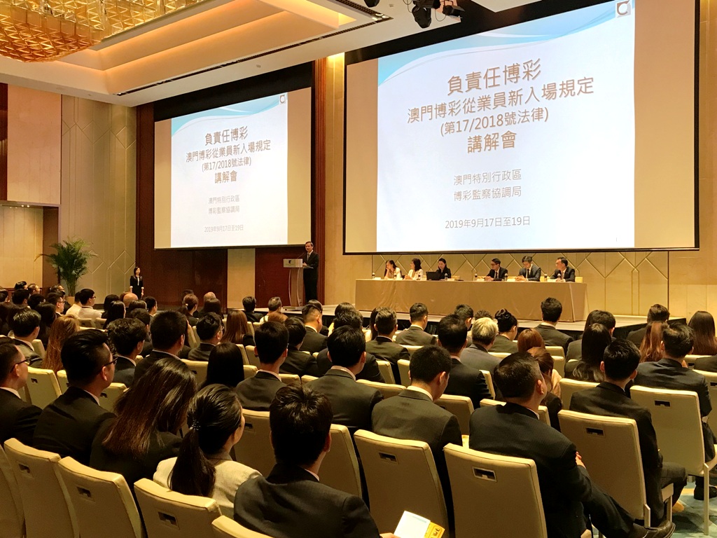 經第17/2018號法律修改的第10/2012號法律《規範進入娛樂場和在場內工作及博彩的條件》(下稱“進入娛樂場法”)中有關博彩從業員工餘時間禁止進入娛樂場的規定將於2019年12月27日起正式生效。為讓博彩從業員清楚掌握有關規定及執行措施,博彩監察協調局於早前為六間博彩企業舉行講解會,出席者包括博彩企業及博彩中介人僱員。