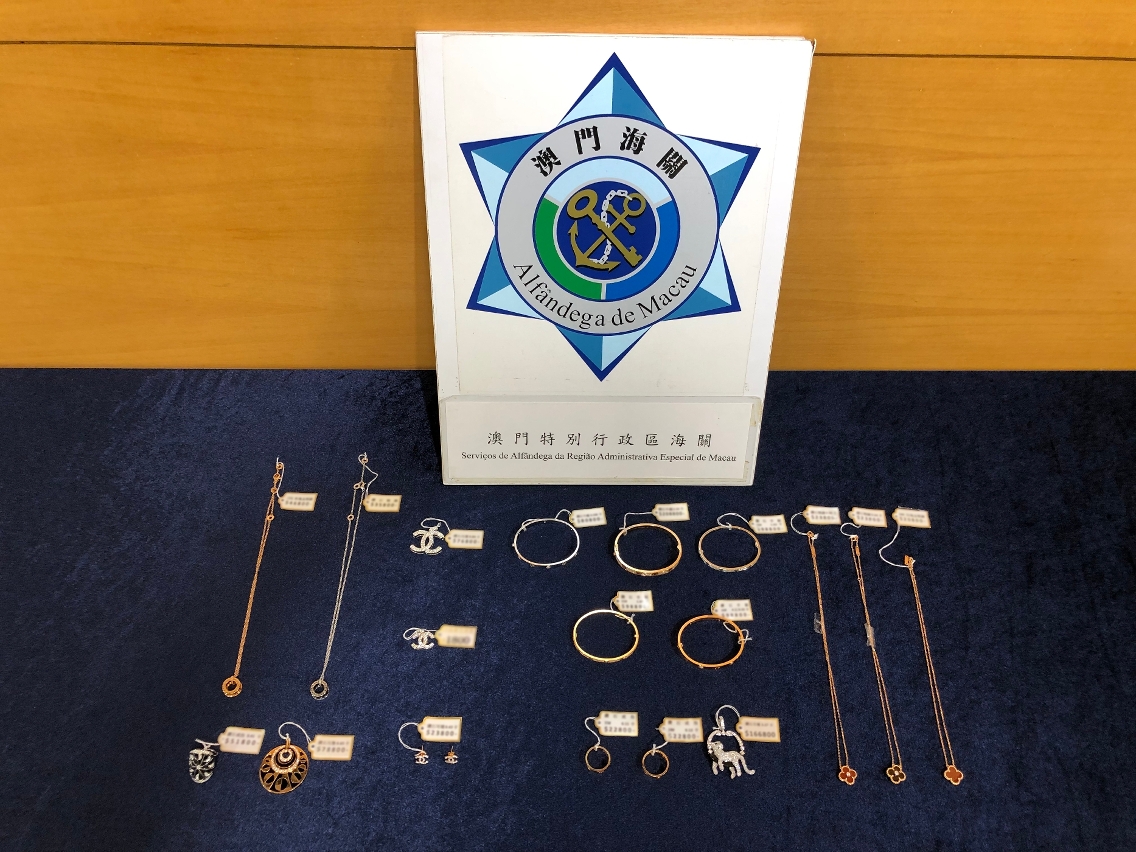 有市民早前向海關舉報,懷疑中區一間當舖出售侵權物品,海關經調查後於本月14日採取行動,於該當舖查獲19件侵權飾物,正貨價值約澳門幣120萬元。一名男性店舖負責人涉案,已被移送檢察院偵辦。