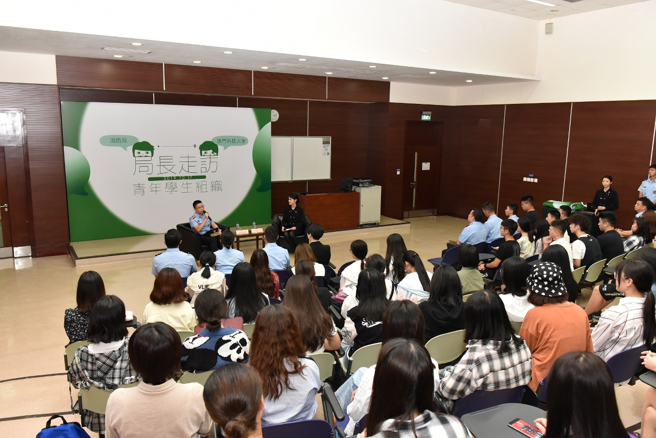 青年人作為社會未來的棟樑,特區政府一直十分重視他們的聲音及意見。消防局為促進與本澳青年朋友的溝通和交流,局長梁毓森於10月17日到訪澳門科技大學,與約160名學生進行“青年與局長真情對話”,以「聆聽青年創新思維,共同維繫消防安全」為主題互動交流,冀透過與青年人面對面接觸,聆聽他們對消防工作的想法、期望,以及汲取他們對維繫澳門社區的消防安全的意見和建議。