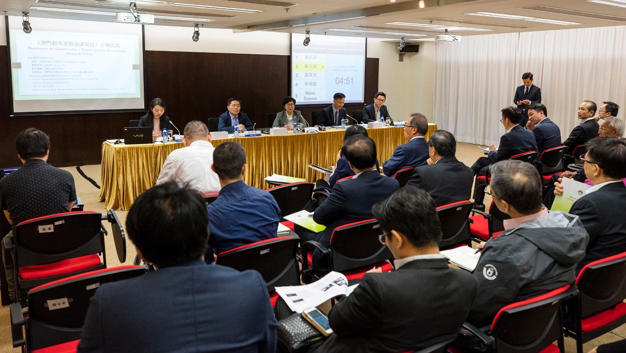 特區政府於2019年11月8日就《澳門都市更新法律制度》舉行專業界別專場諮詢會,聽取都市更新委員會、澳門都市更新股份有限公司、城市規劃委員會、建築業界及物業管理業界等多個專業團體的意見和建議。