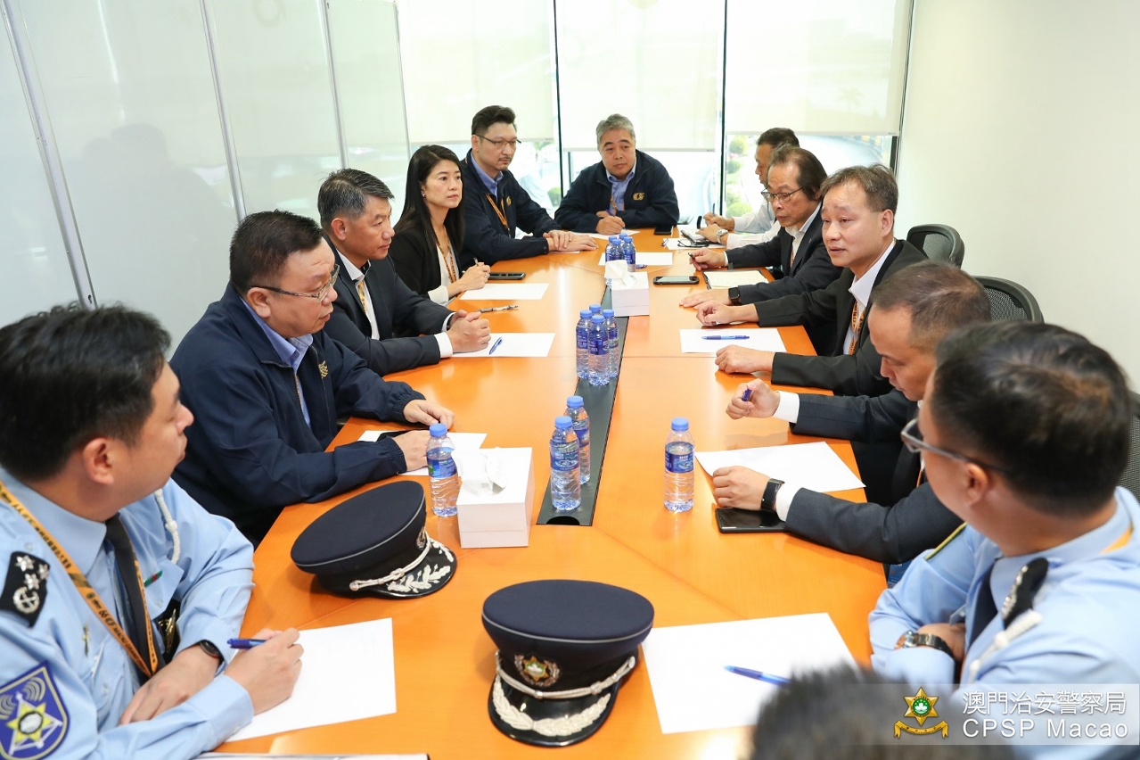 今早,警察總局馬耀權局長、治安警察局梁文昌局長及各領導主管到格蘭披治賽車大樓,與大賽車安保工作負責人進行工作會議,聽取各人員講解工作內容並作出指示,以及聯同大賽車組委會眾負責人巡視了各單位工作情況,為現場工作人員打氣。