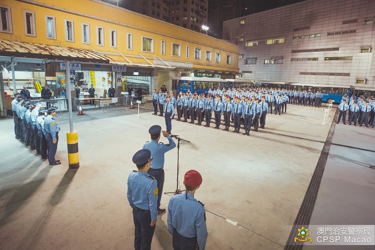 「第66屆澳門格蘭披治大賽車」於今(14)日起進行賽事,治安警察局全力做好各項安保及賽道周邊疏導車流工作,確保賽事順利進行及巿面交通秩序。警務指揮官趙崇遠警務總長於今早與所有參與大賽車安保工作的警務人員進行列隊,其後特警隊攜同警犬前往賽道及看台進行安全巡查及搜查可疑物品,確保賽道及周邊的安全。