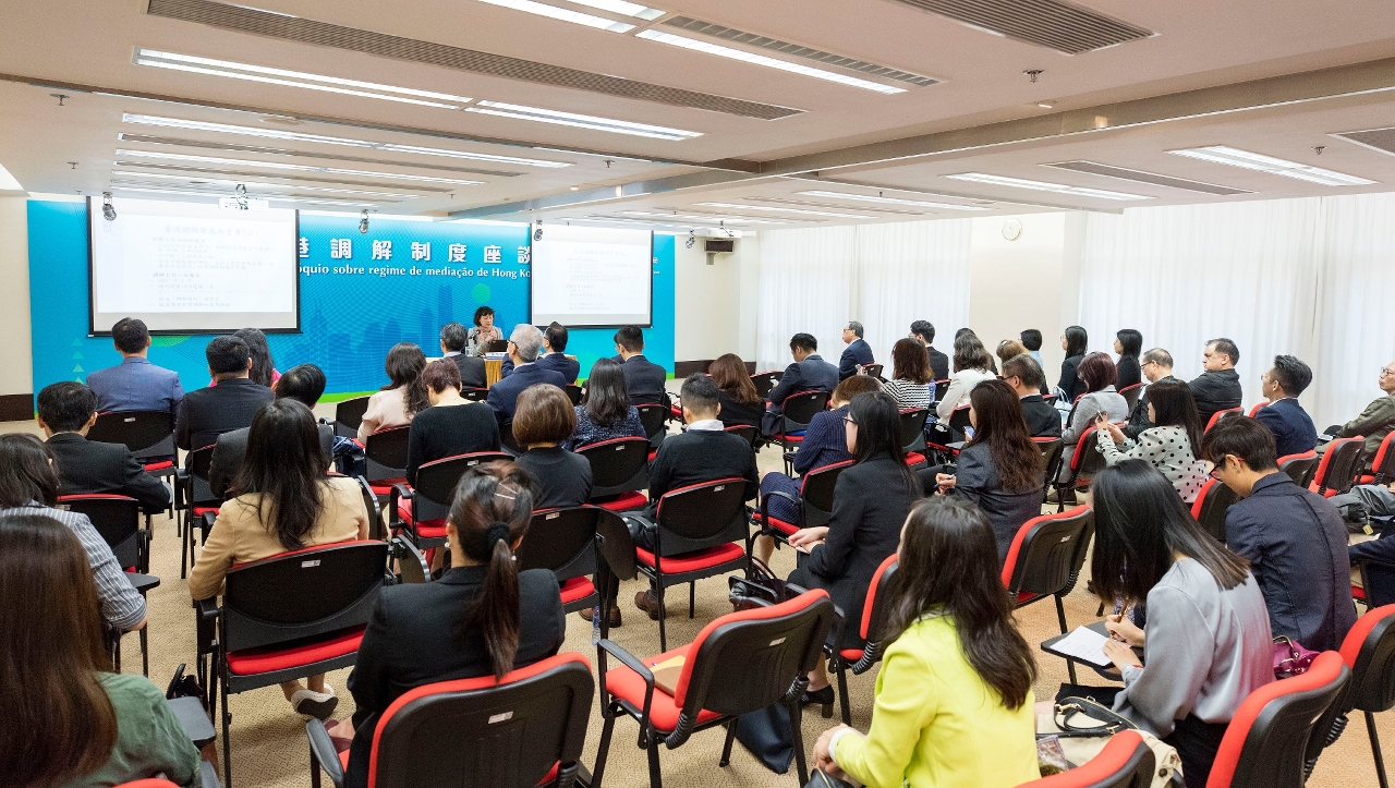 為配合澳門特區政府現正制定的《民商事調解法》法案,並協調推動粵港澳大灣區多元化糾紛解決機制的完善和運用,法務局於11月13日舉辦題為“香港調解制度座談會”的專題講座,邀請了香港特別行政區政府律政司高級助理民事法律專員陳潔儀女士,向澳門調解業界介紹香港的調解制度及發展,以及分享在調解工作方面的實務經驗。