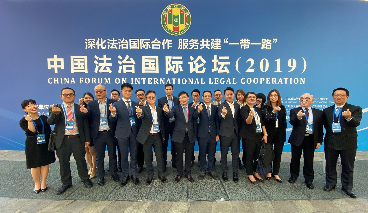 中國法治國際論壇(2019)於11月10日至11日在廣州舉行。來自40多個國家、4個國際組織的法學法律界人士相聚中國廣州,出席中國法學會主辦的本次論壇,圍繞“深化中國法治國際合作,服務共建‘一帶一路’”主題進行了廣泛深入的討論。議題涵蓋“一帶一路”與創造良好投資環境、“一帶一路”與加強智慧財產權保護國際合作等。國家主席習近平向論壇致賀信,並在信中指出“推動共建‘一帶一路’,需要法治進行保障。中國願同各國一道,營造良好法治環境,構建公正、合理、透明的國際經貿規則體系,推動‘一帶一路’高質量發展,更好造福各國人民。” 中共中央政治局委員、全國人大常委會副委員長、中國法學會會長王晨、廣東省委書記李希、外交部條法司司長賈桂德,以及各獲邀嘉賓在開幕式上致辭。澳門特區政府法務局局長劉德學亦應邀在開幕式上發言,本次論壇與會代表一致認為,推動共建“一帶一路”需要法治進行保障,希望能夠繼續加強交流、增進共識,使法治在共建“一帶一路”進程中更好地發揮作用。