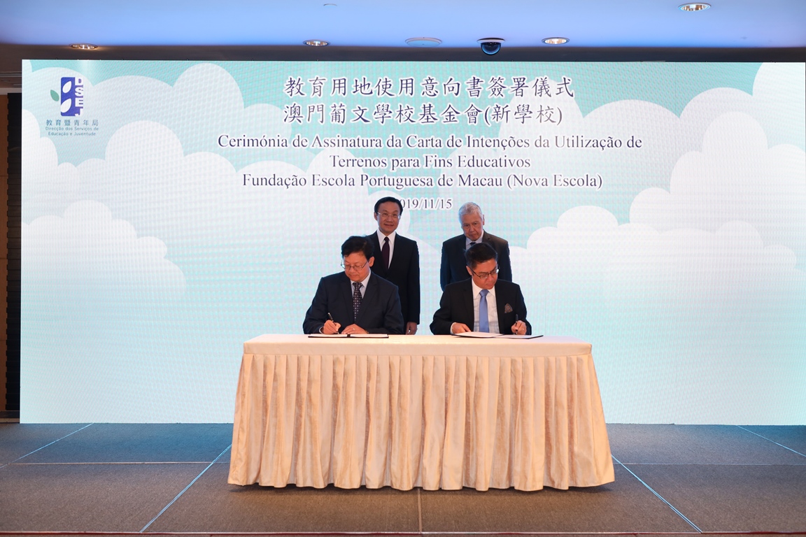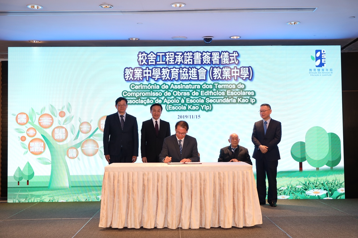 非高等教育委員會和青年事務委員會於2019年11月15日上午在旅遊塔舉行聯合座談會。會議前,首先舉行了簽署儀式,在社會文化司司長譚俊榮的見證下,教育暨青年局局長老柏生與7個辦學實體的代表進行了改善學校教育環境各項工作簽署儀式及校舍工程承諾書簽署儀式。包括與聖安東尼教育會簽署了加入免費教育學校系統承諾書及“藍天工程”計劃意向書,與澳門德明學校教育協進會簽署了“藍天工程”計劃意向書,與天主教澳門教區、澳門工會聯合總會及澳門葡文學校基金會簽署了教育用地使用意向書,與澳門工會聯合總會、教業中學教育協進會、鮑思高慈幼會簽署了校舍工程承諾書。出席簽署儀式的,還有各個辦學實體代表、學校代表、非高等教育委員會委員、青年事務委員會委員,以及教育發展基金行政管理委員會成員。