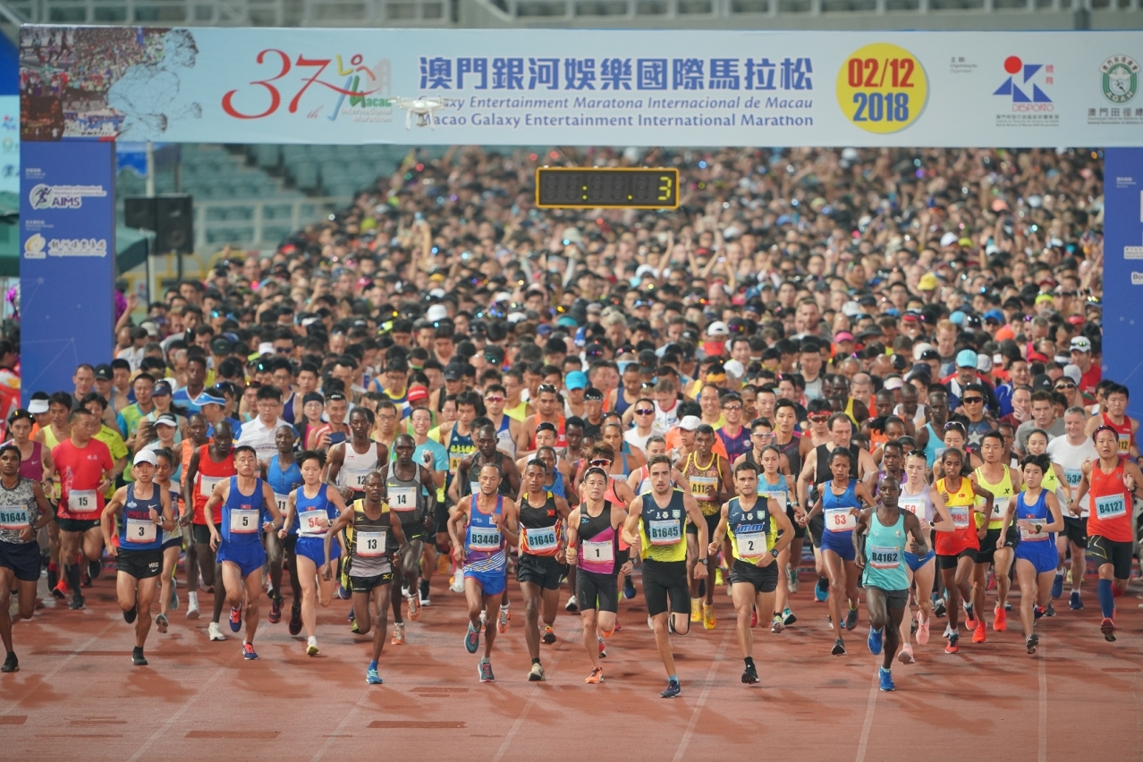 由體育局及澳門田徑總會主辦,銀河娛樂集團冠名贊助的「慶祝澳門特別行政區成立二十周年 – 2019銀河娛樂澳門國際馬拉松」將於12月1日(星期日)舉行,合共12,000名參賽者將分別於當日早上6時正(馬拉松、半程馬拉松)及6時15分(迷你馬拉松)在奧林匹克體育中心運動場起跑。