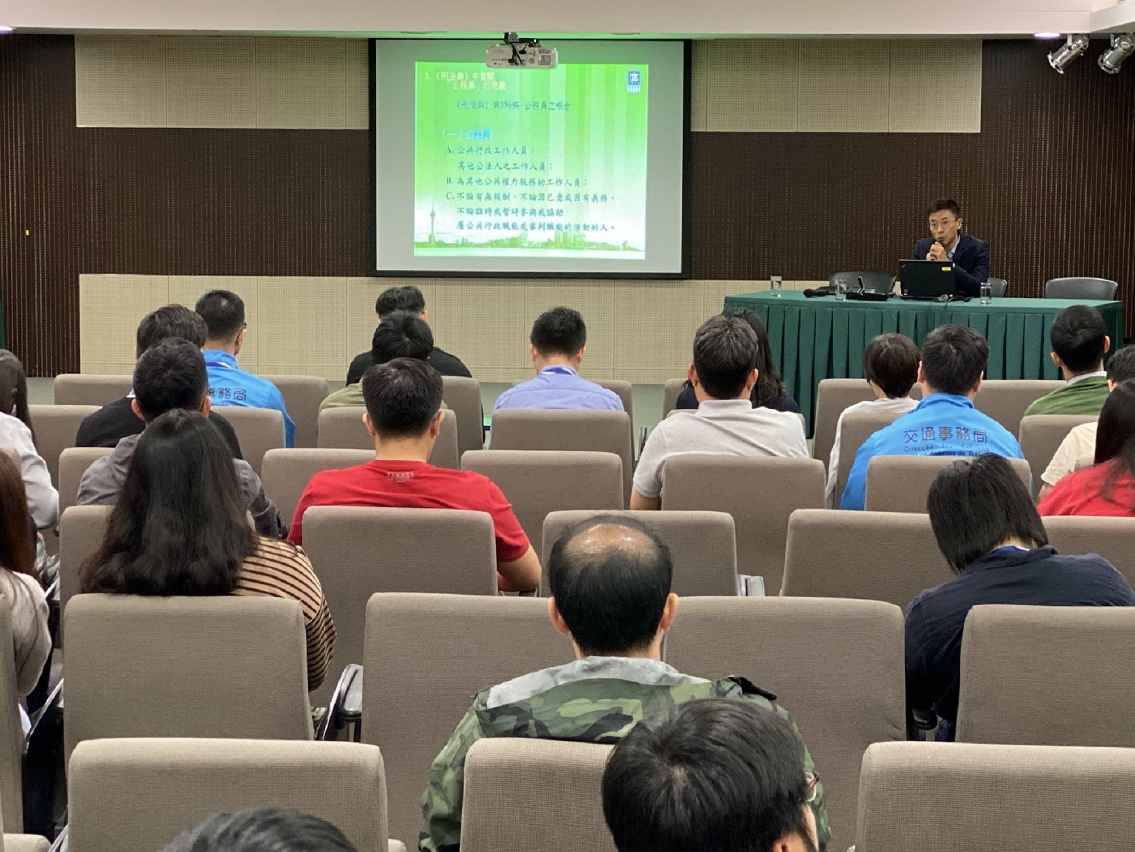 交通事務局早前邀請廉政公署為工作人員舉辦「廉潔奉公」及「公務採購」講座,講解公務人員在進行公務採購時應遵從的原則、公務採購的形式、各階段之程序及注意事項,又提醒公務員應具備無私、熱心及保密的義務,透過案例展示、結合實務工作,講述在執行公務時各項可能構成犯罪的行為,並提供防範建議,讓與會者在執行公務時更容易識別涉及違反廉潔誠信的違法行為,提升自身守法意識。