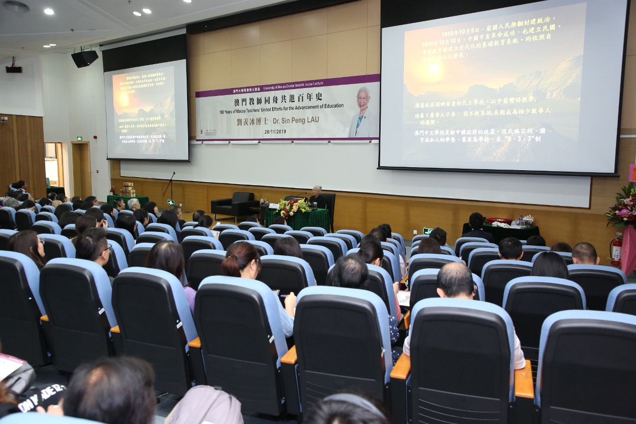 澳門大學今(26)日舉行“澳門教師同舟共進百年史” 榮譽博士講座,邀請了澳大榮譽博士、澳門資深教育家劉羨冰博士擔任主講嘉賓,與在場各界人士及師生分享對澳門教師同舟共進百年的歷程及看法。