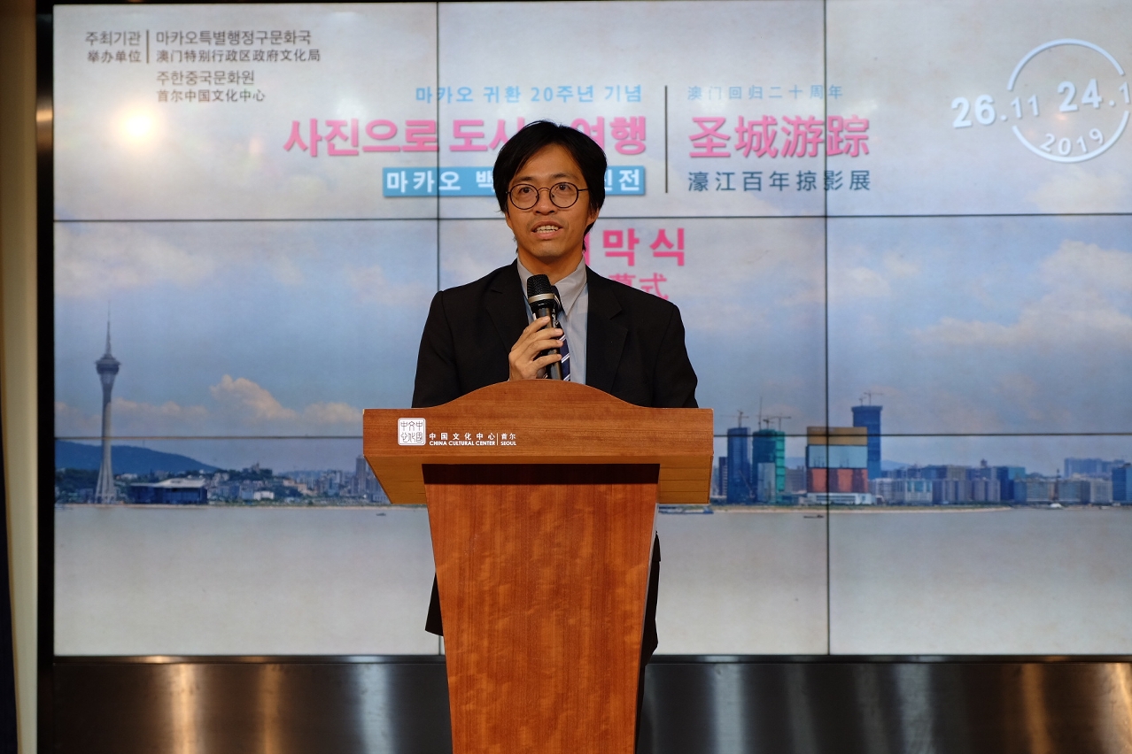澳門特別行政區政府文化局、韓國首爾中國文化中心主辦的“聖城遊蹤──濠江百年掠影展”,於今日(11月26日)在韓國首爾中國文化中心揭幕。由中國駐韓國大使館公使銜參贊王魯新、文化參贊兼首爾中國文化中心主任王彥軍、首爾特別市國際交流課中國處處長李幸龍、首爾中國文化中心副主任雲峰、副主任李少鵬、澳門博物館館長呂志鵬、韓國國立古宮博物館館長池炳穆、韓中文化經濟友好協會會長李英愛等主禮,展覽日期至2019年12月24日。