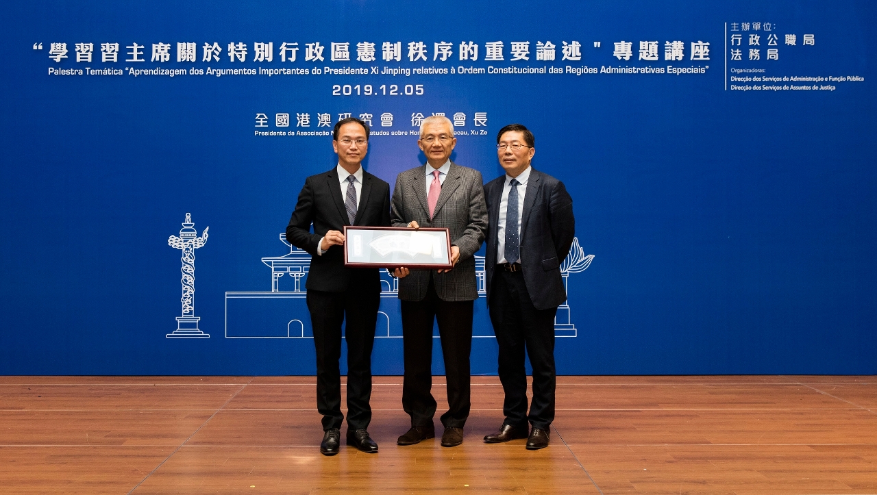 為慶祝中華人民共和國成立七十週年及澳門特別行政區成立二十週年,並加強特區政府公務人員對《中華人民共和國憲法》及《澳門特別行政區基本法》的了解,更深入認識澳門特別行政區的憲制性法律制度。行政公職局與法務局合辦主題為“學習習主席關於特別行政區憲制秩序的重要論述”專題講座,並邀請全國港澳研究會會長徐澤擔任主講嘉賓。講座於12月5日在澳門科學館會議中心舉行,行政公職局局長高炳坤、法務局局長劉德學、各政府部門的領導、主管及其他公務人員超過230人出席。