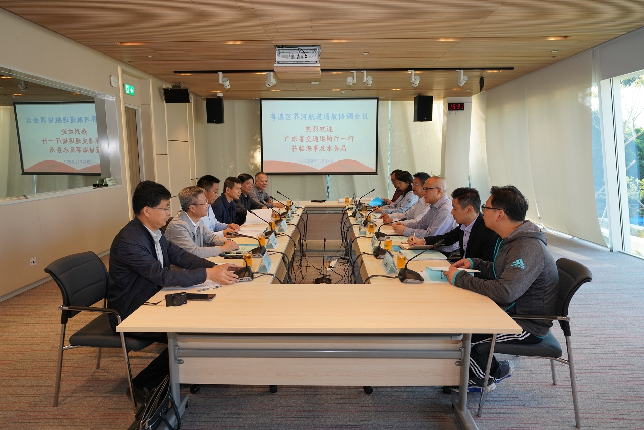 廣東省交通運輸廳航道管理處處長鄒德華、廣東省航道事務中心副主任劉陽林等人日前來澳,獲澳門海事及水務局副局長曹賜德、海事活動廳廳長胡柱鵬的熱情接待。會議上雙方談及粵港澳大灣區發展計劃對廣東省及澳門是難得的發展機遇,並且認同共同推進粵澳區界河航道建設是助力粵港澳大灣區建設的重要舉措。