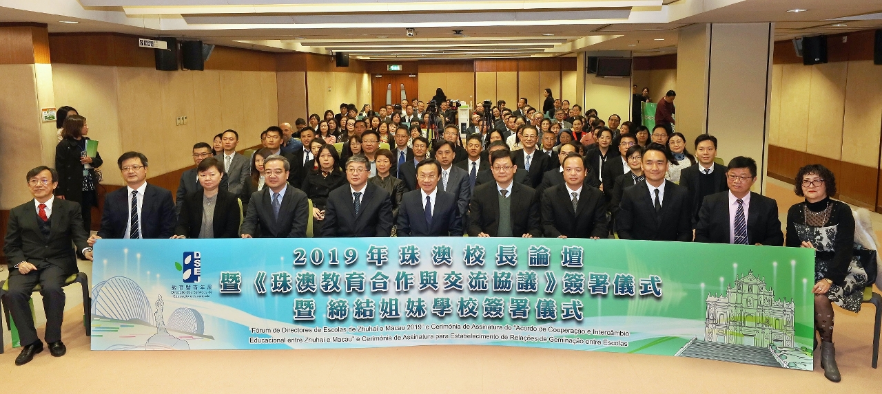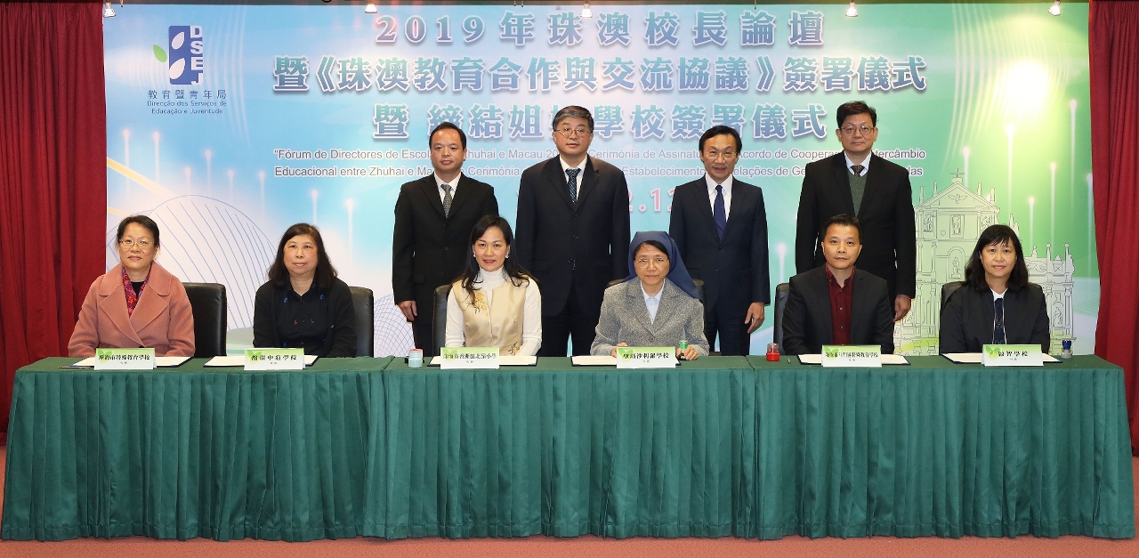 為慶祝澳門回歸20周年,加強珠海與澳門教育界的深度融合,增進珠澳兩地學校間友誼,澳門特區政府教育暨青年局與珠海市教育局於12月12日在教青局聯合舉辦以“聚焦大灣區建設,實現教育的融合與共贏”為主題的“2019年珠澳校長論壇”。特別安排《珠澳教育合作與交流協議》簽署儀式,並為2019年締結的九對珠澳姐妹學校進行簽署儀式及《姐妹學校交流紀念特刊2019》發布儀式。