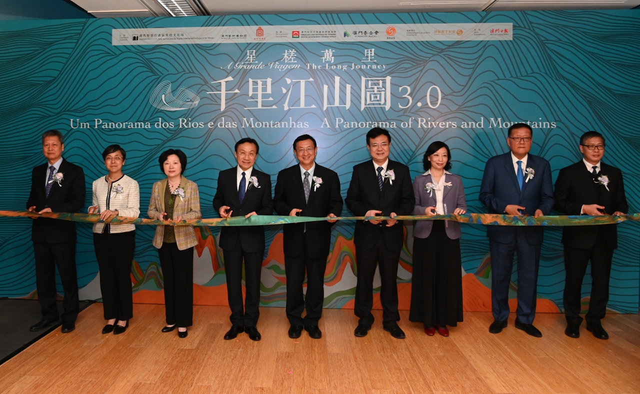 為慶祝中華人民共和國成立七十周年暨澳門回歸祖國二十周年,文化局轄下澳門藝術博物館與故宮攜手呈獻規模空前的系列展覽“星槎萬里”,首階段展覽“千里江山圖3.0”今日(12月17日)下午6時於藝博館二樓專題展覽廳舉行揭幕儀式,由國家文化和旅遊部部長雒樹剛、澳門特別行政區政府社會文化司司長譚俊榮、中央人民政府駐澳門特別行政區聯絡辦公室副主任薛曉峰、外交部駐澳門特別行政區特派員公署特派員沈蓓莉、澳門特別行政區政府文化局局長穆欣欣、澳門特別行政區政府旅遊局局長文綺華、鳳凰衛視投資(控股)有限公司董事局主席兼行政總裁劉長樂、澳門日報副社長兼總經理溫能漢及澳門特別行政區政府文化局副局長陳繼春主禮,到賀者眾。