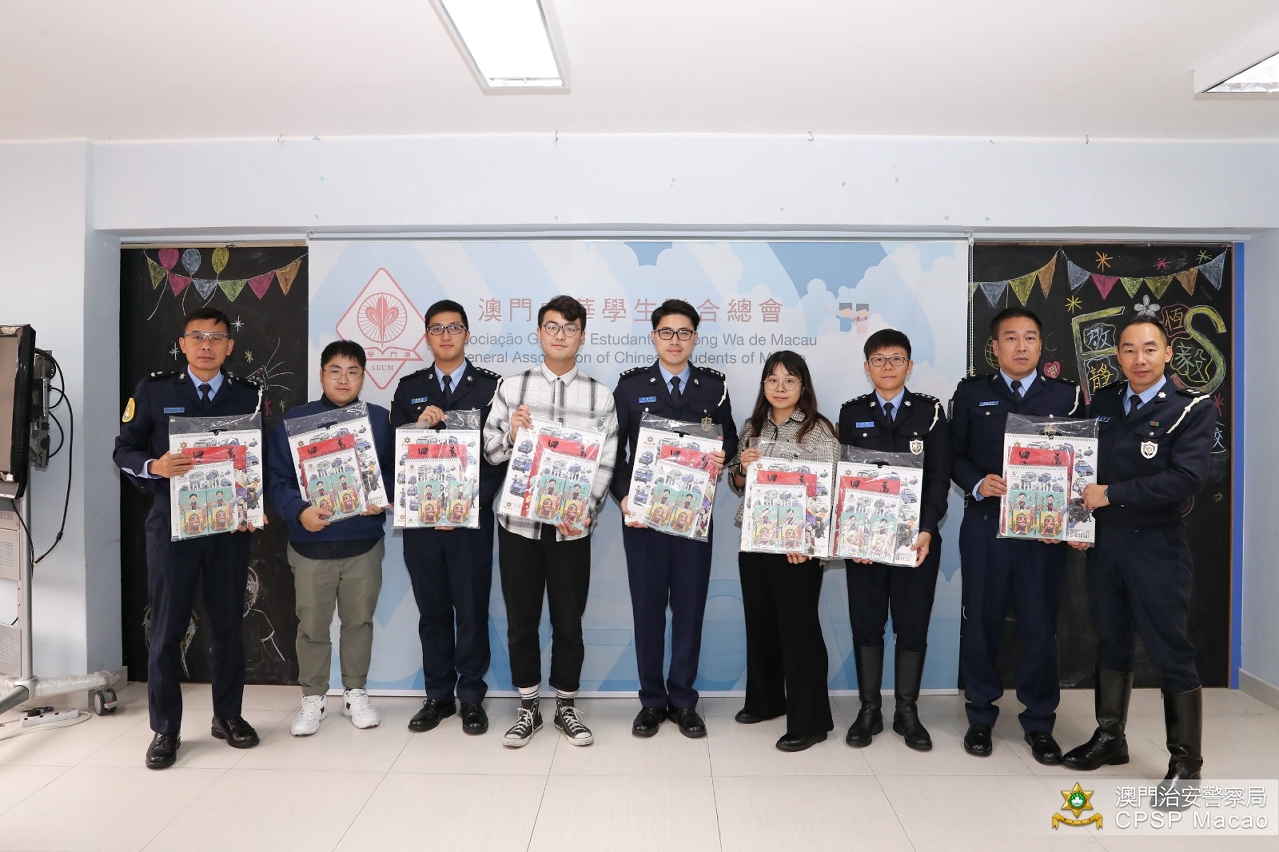 治安警察局於1月10日上午拜訪澳門中華學生聯合總會進行冬防會議,獲學聯楊煒軒理事長、周星傑主任和林敏詩主任親切接待,雙方就向青少年傳遞防罪資訊進行探討。