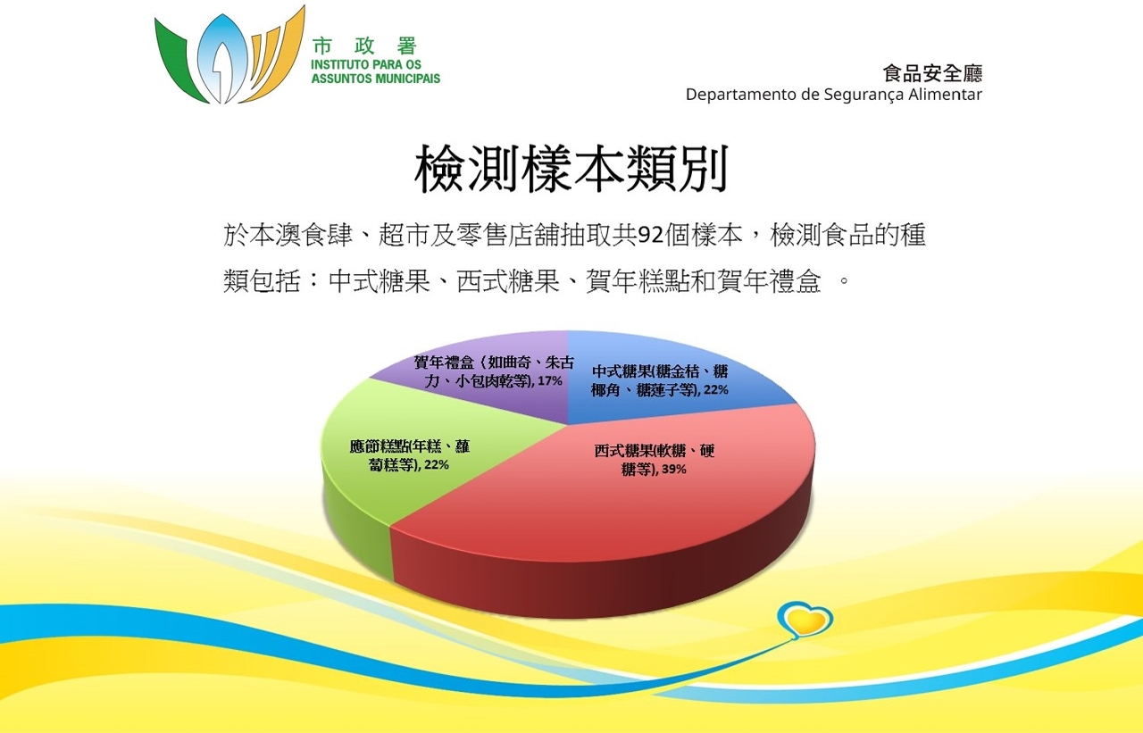 農曆新年在即,為保障市民食用安全,市政署與消費者委員會於本澳食肆、超市及零售店舖等地點,共抽取九十二件賀年食品樣本進行檢驗,所有樣本的檢測結果均未見異常。